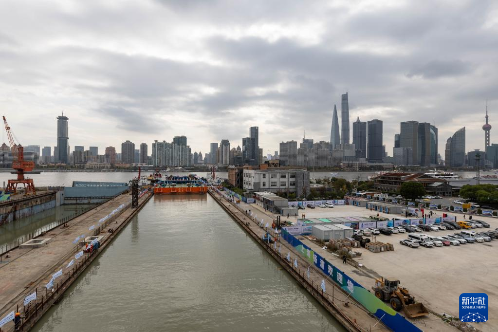 Yangtze No. 2 Ancient Shipwreck transferred to dock near Huangpu River in Shanghai