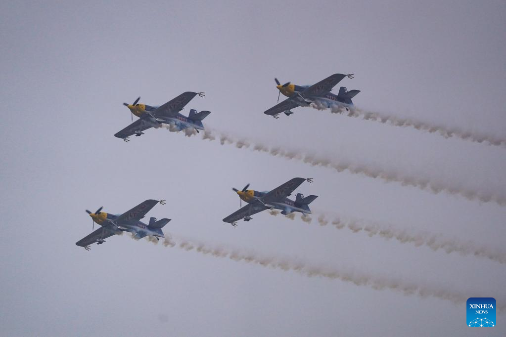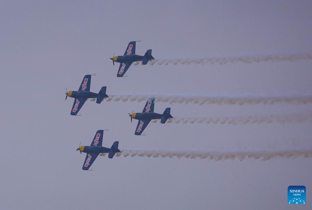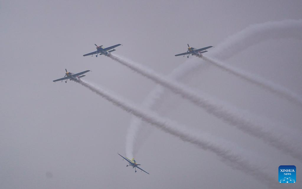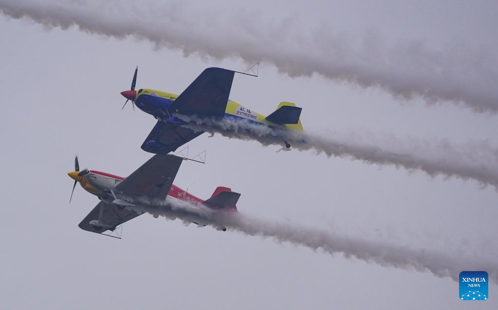 Aircraft from a South African aerobatic team perform at the Nanchang Air Show in Nanchang, east China's Jiangxi Province, Nov. 25, 2022. The 2022 China Aviation Industry Conference and Nanchang Air Show kicked off here on Friday. (Xinhua/Zhou Mi)