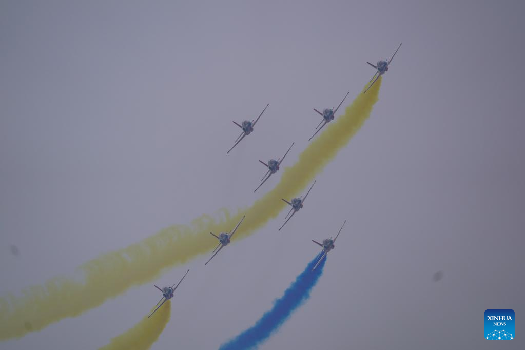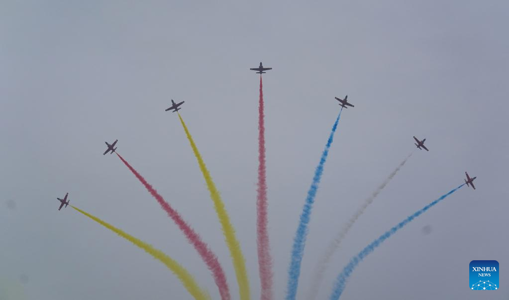Aircraft from two Russian aerobatic teams jointly perform at the Nanchang Air Show in Nanchang, east China's Jiangxi Province, Nov. 25, 2022. The 2022 China Aviation Industry Conference and Nanchang Air Show kicked off here on Friday. (Xinhua/Zhou Mi)
