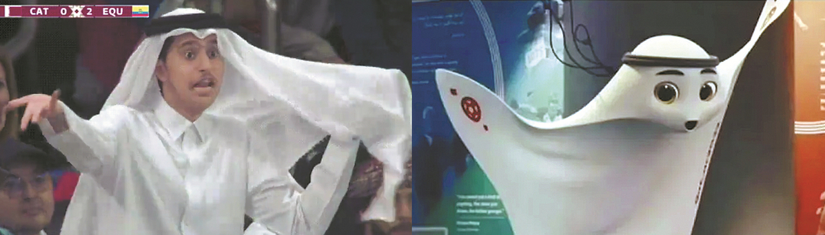 During the live broadcast of the opening match between Qatar and Ecuador, a young fan in the audience wearing a kaffiyeh, a traditional male headdress in the region, grabbed people's attention by making dramatic facial expressions showing his unhappiness about his team's performance. The Qatari team ultimately lost the match.