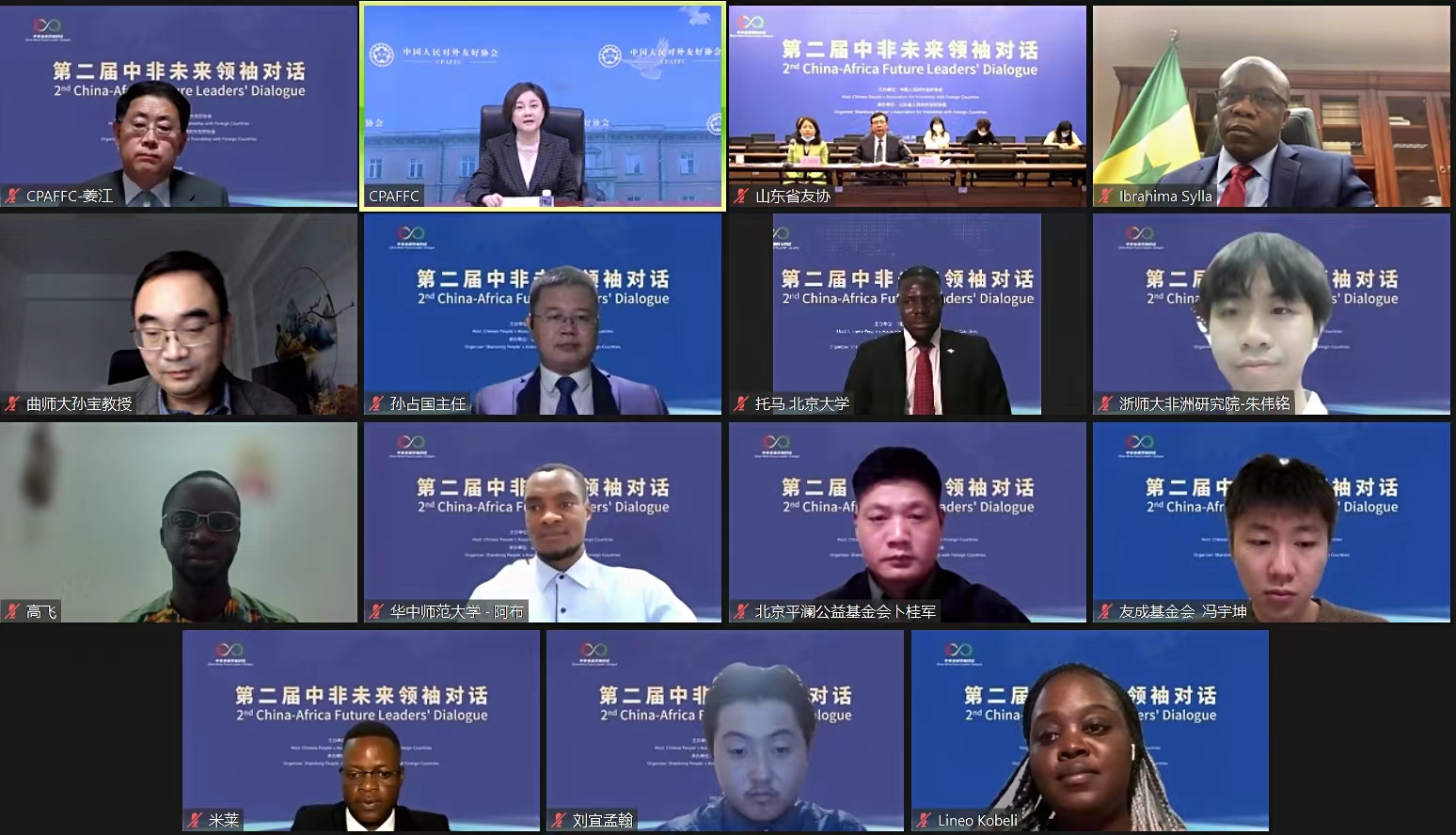 Under the theme "Contributing Youth Strength for the Creation of a Better Future," the 2nd China-Africa Future Leaders' Dialogue, hosted by Chinese People's Association for Friendship with Foreign Countries (CPAFFC) and co-organized by Shandong People's Association for Friendship with Foreign Countries, was held online on Friday.