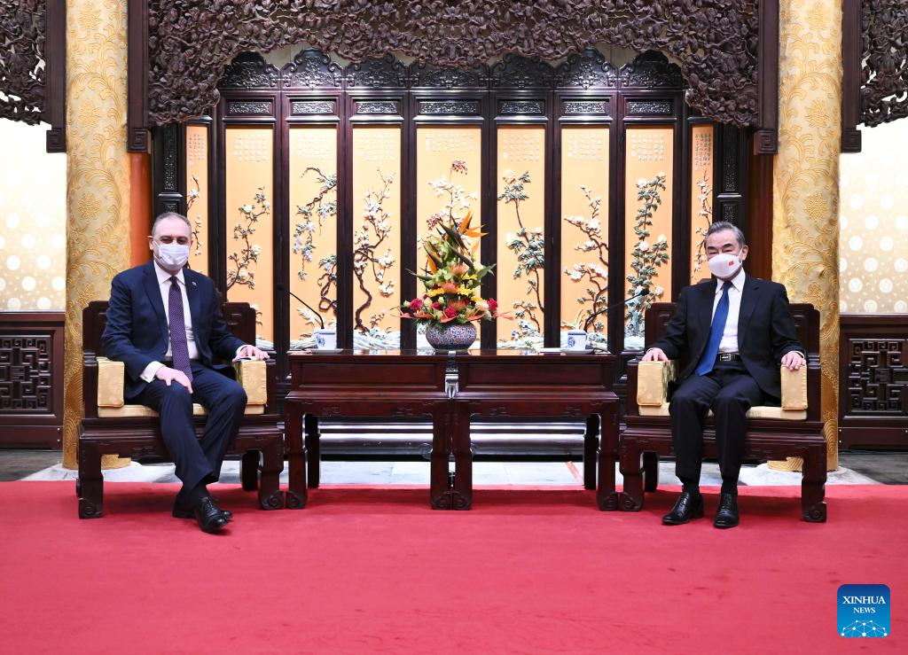 Chinese State Councilor and Foreign Minister Wang Yi, also a member of the Political Bureau of the Communist Party of China Central Committee, meets with new Russian Ambassador to China Igor Morgulov in Beijing, capital of China, Nov. 27, 2022. (Xinhua/Yan Yan)