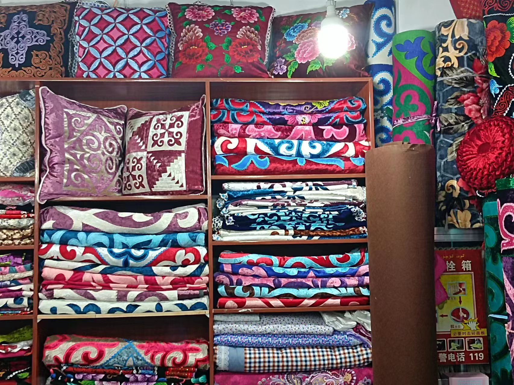 Photo shows Kazakh embroidery works at an embroidery shop in Jeminay county, Altay Prefecture, northwest China's Xinjiang Uygur Autonomous Region, Nov. 21, 2022. (Photo courtesy of the Convergence Media Center of Jeminay county)