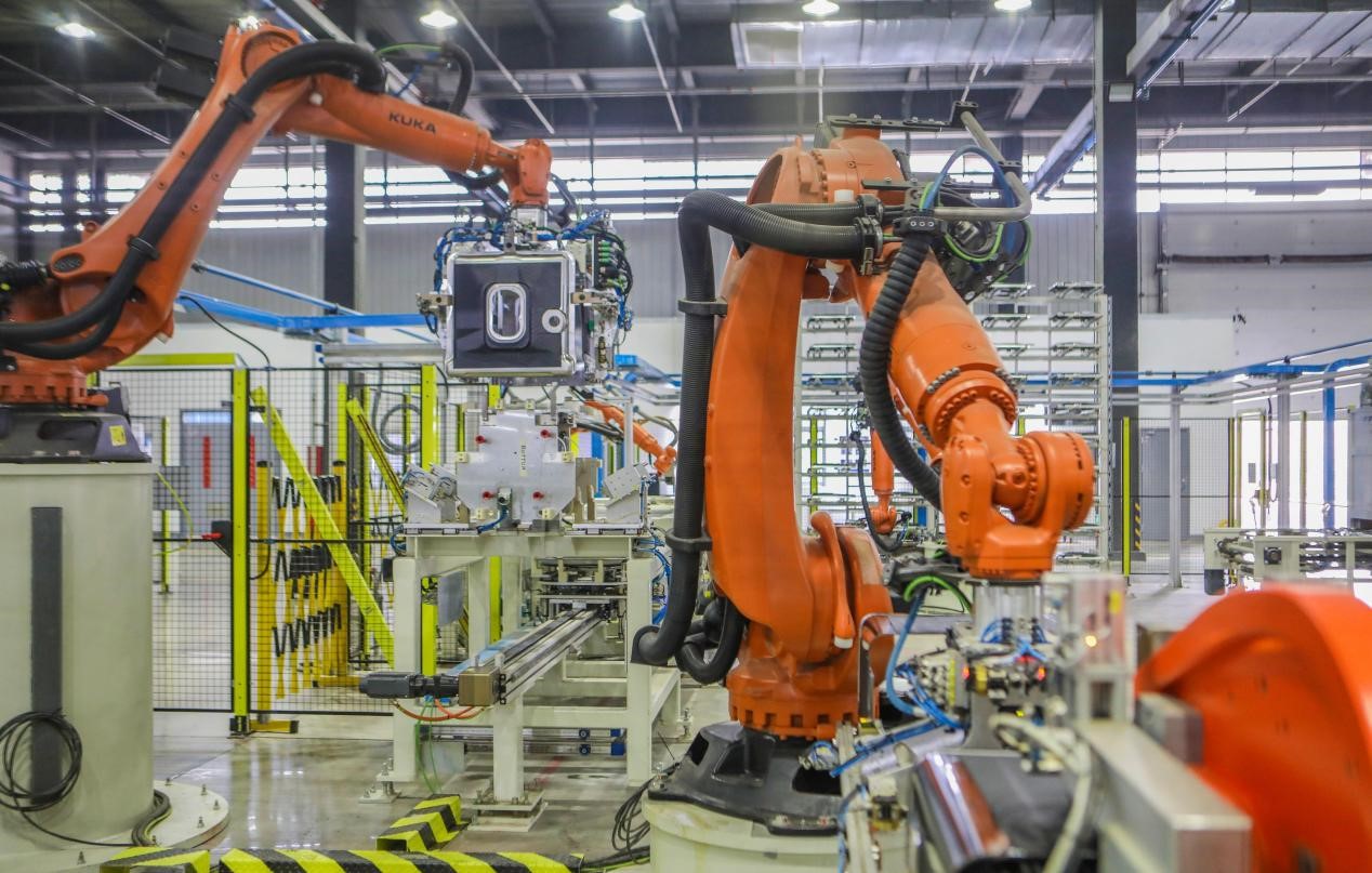 Robotic arms are manufacturing dish-washing machines in an intelligent factory of American home appliance maker Whirlpool in Hefei, east China's Anhui province, Nov. 12, 2021. (People's Daily Online/Xu Qingyong)