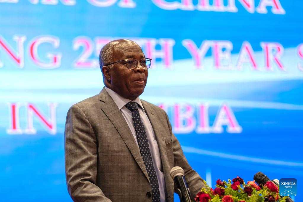 Zambia's Finance and National Planning Minister Situmbeko Musokotwane addresses the celebration event marking the 25th anniversary of the establishment of the Bank of China Zambia Ltd. in Lusaka, Zambia, Nov. 25, 2022. (Xinhua/Peng Lijun)