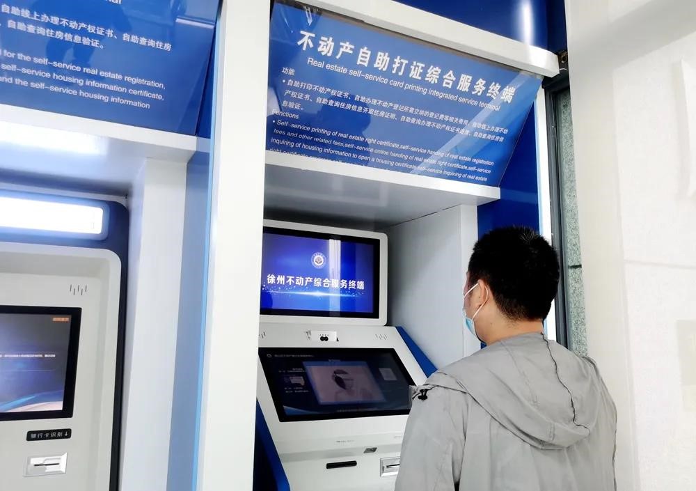 A citizen has his documents printed at a self-service terminal at the real estate registration center of the natural resources and planning bureau of Tongshan district, Xuzhou, east China's Jiangsu province. (Photo courtesy of the cyberspace administration of Jiangsu Province)