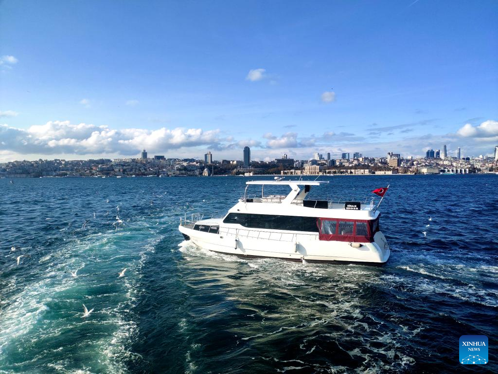 This photo taken on Nov. 27, 2022 shows a view of the Bosporus Strait in Istanbul, Trkiye. (Xinhua/Shadati)