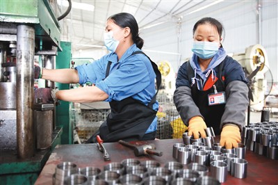 Employees work at a company manufacturing auto parts in Tongdao Dong Autonomous County, Huaihua city, central China’s Hunan Province. (Photo/Li Shangyin)