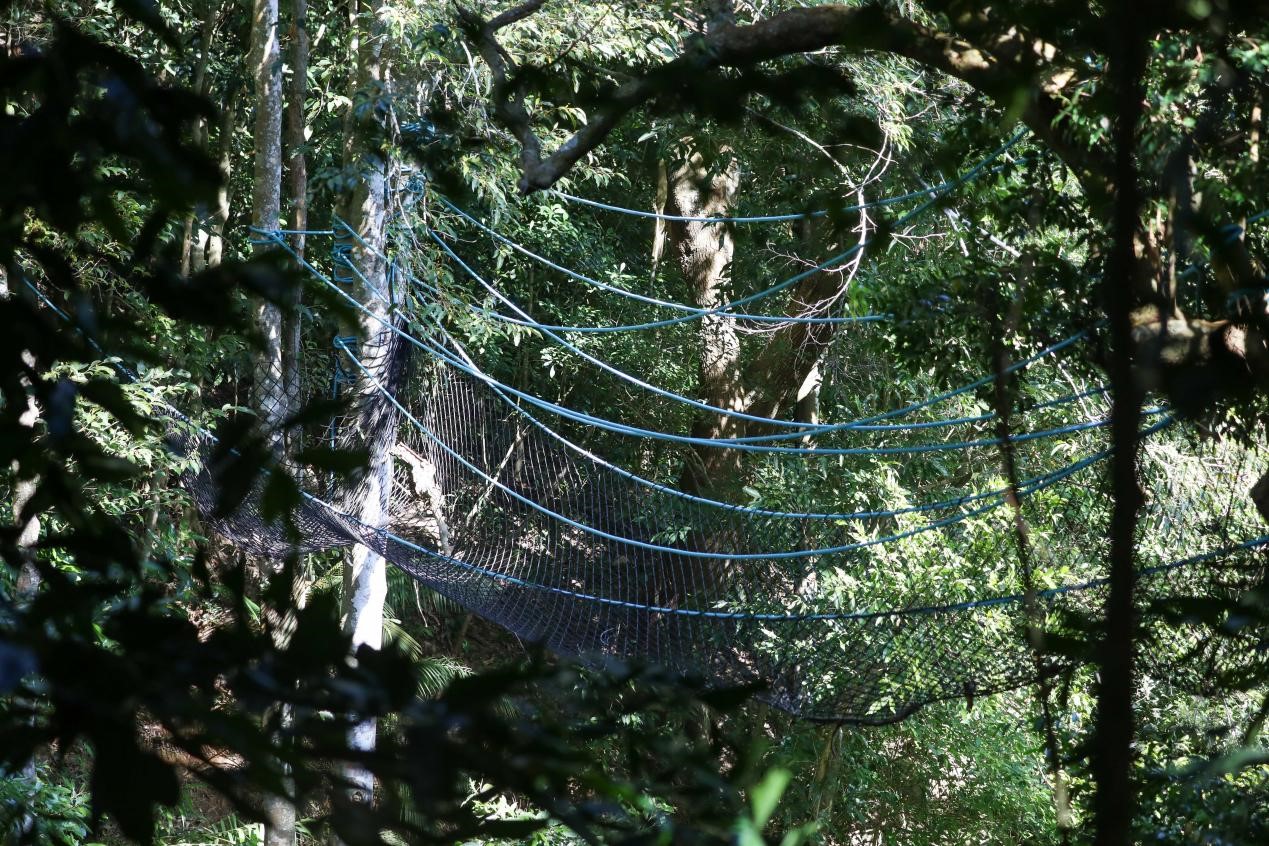 Photo taken on Dec. 2, 2021 shows a manmade ecological corridor for gibbons in the Hainan Tropical Rainforest National Park. (Photo by Li Tianping/People's Daily Online)