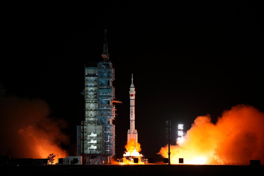 The spaceship, atop the Long March-2F Y15 carrier rocket, blasted off from the Jiuquan Satellite Launch Center in northwest China at 11:08 p.m. (Beijing Time), according to the China Manned Space Agency (CMSA).