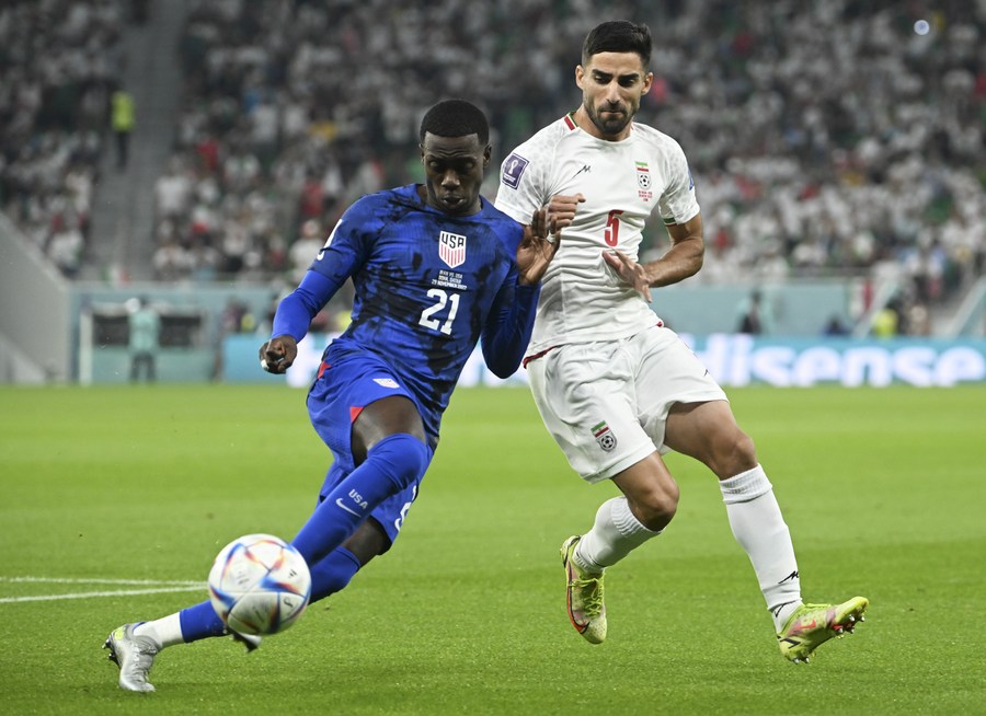DOHA, Nov. 29 (Xinhua) -- Christian Pulisic's sole goal helped the United States beat Iran 1-0 and qualified for the last 16 in the 2022 FIFA World Cup at the Al Thumama Stadium on Tuesday.