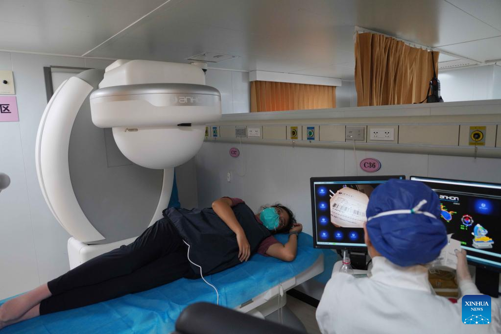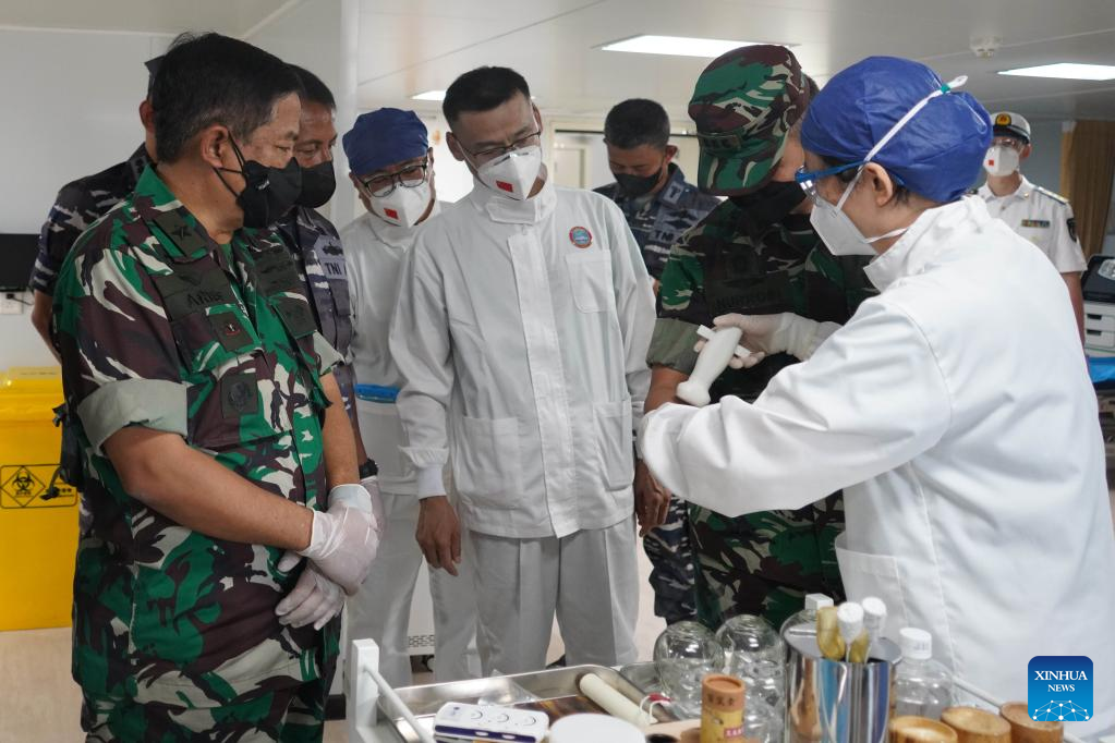 A doctor conducts medical examination for a local patient on the Chinese naval hospital ship Peace Ark during a medical mission in Jakarta, capital of Indonesia, Nov. 11, 2022. (Photo by Sun Fei/Xinhua)