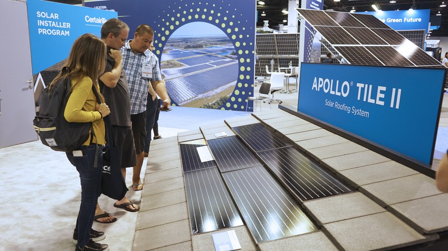 People visit "RE+ 2022" show held at the Anaheim Convention Center in Orange County, California, the United States on Sept. 21, 2022. (Photo by Zeng Hui/Xinhua)