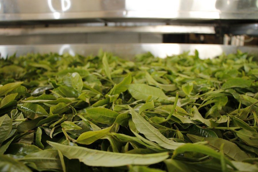 Tea leaves are being dehydrated after preliminary selection in Laobanzhang Village of Menghai County in Xishuangbanna Dai Autonomous Prefecture, southwest China's Yunnan Province, May 30, 2020. (Xinhua/Wu Han)