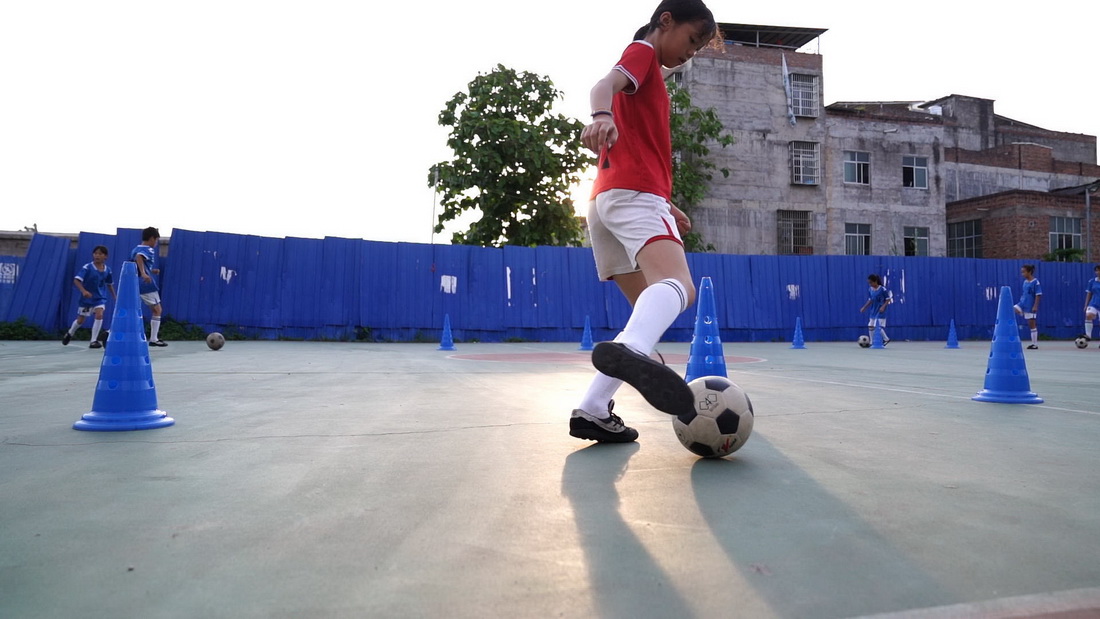 After dinner, 11-year-old Lyu Juan, captain of a girls' football team at a nine-year school in Hualan township of Shangsi county in Fangchenggang city, south China's Guangxi Zhuang Autonomous Region, gathered her teammates to watch the football match between Switzerland and Cameroon at the FIFA World Cup in Qatar, which was being shown at the school’s media room.