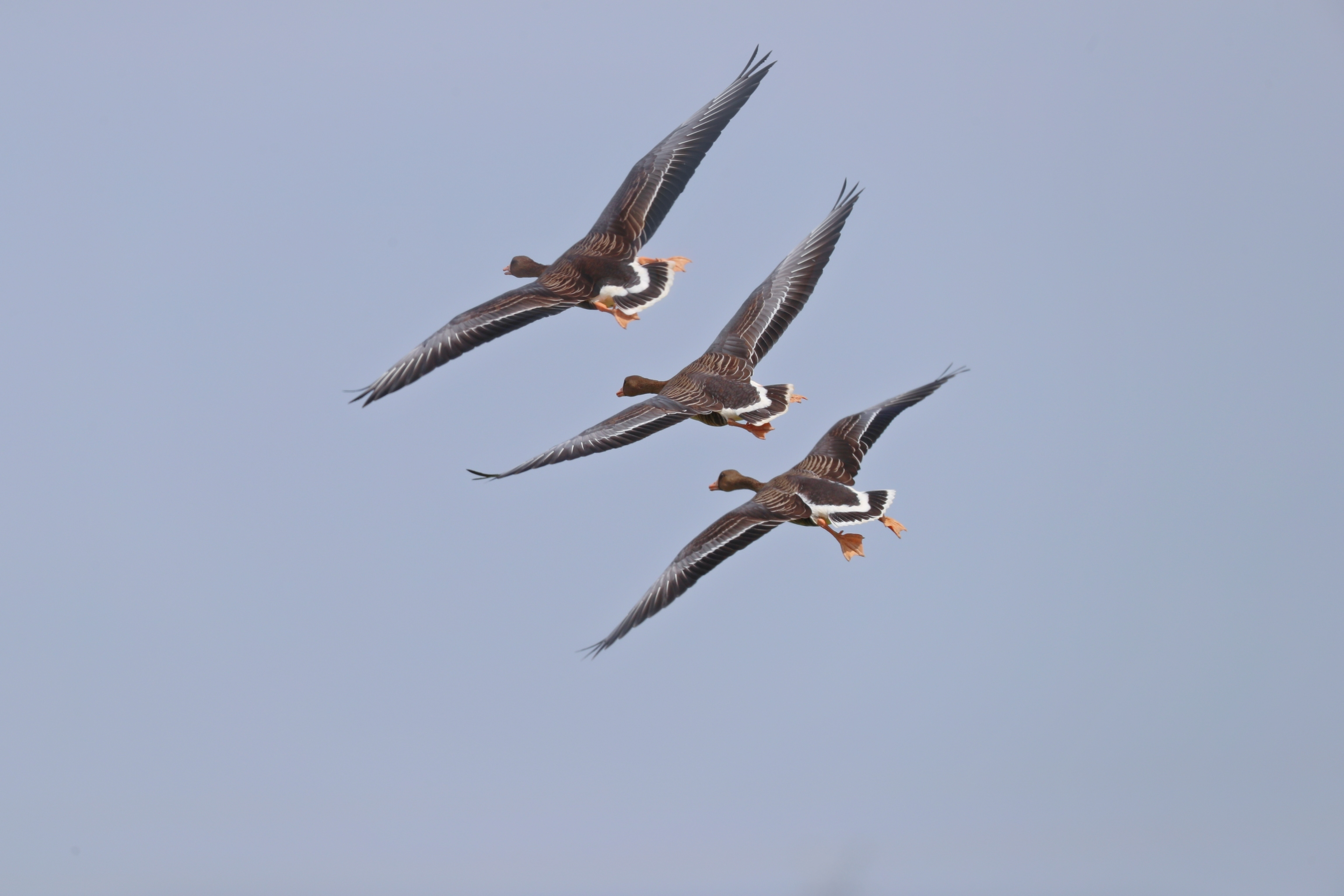 A flock of white-fronted goose, a species under second-class state protection in China, flies over harvested rice fields in Nanlang township, Zhongshan city, south China’s Guangdong Province. (Photo/Zeng Yifeng)