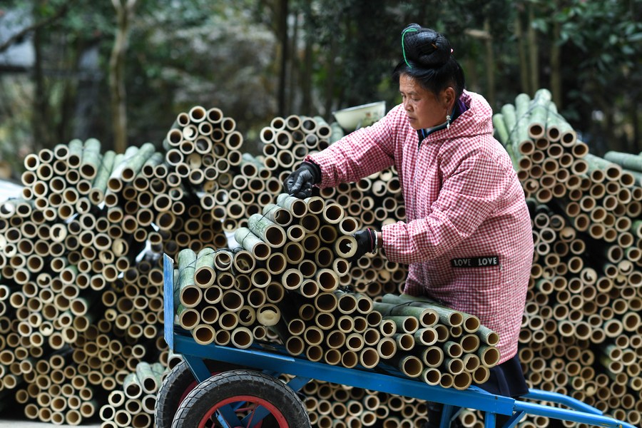 Villagers here sell bamboo as raw materials to paper mills and bamboo product processing factories, earning an income of 480 yuan (about 67.9 U.S. dollars) per tonne.