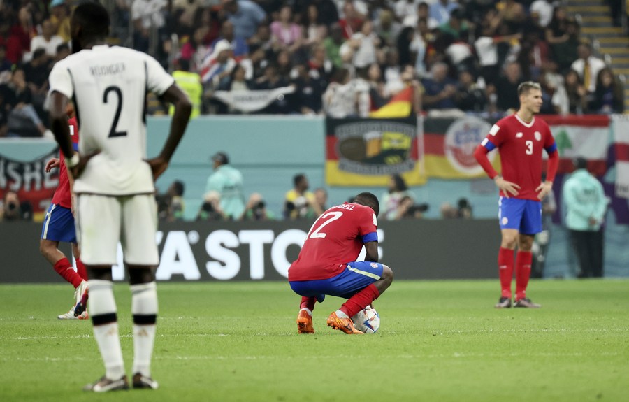 Players look depressed after the Group E match between Costa Rica and Germany at the 2022 FIFA World Cup at Al Bayt Stadium in Al Khor, Qatar, Dec. 1, 2022. (Xinhua/Lan Hongguang)