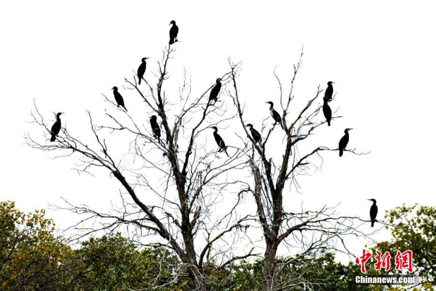 A flock of cormorants perch on a tree in northwest China's Xinjiang Uygur Autonomous Region. (Photo: China News Service/Liu Xiaoyan)