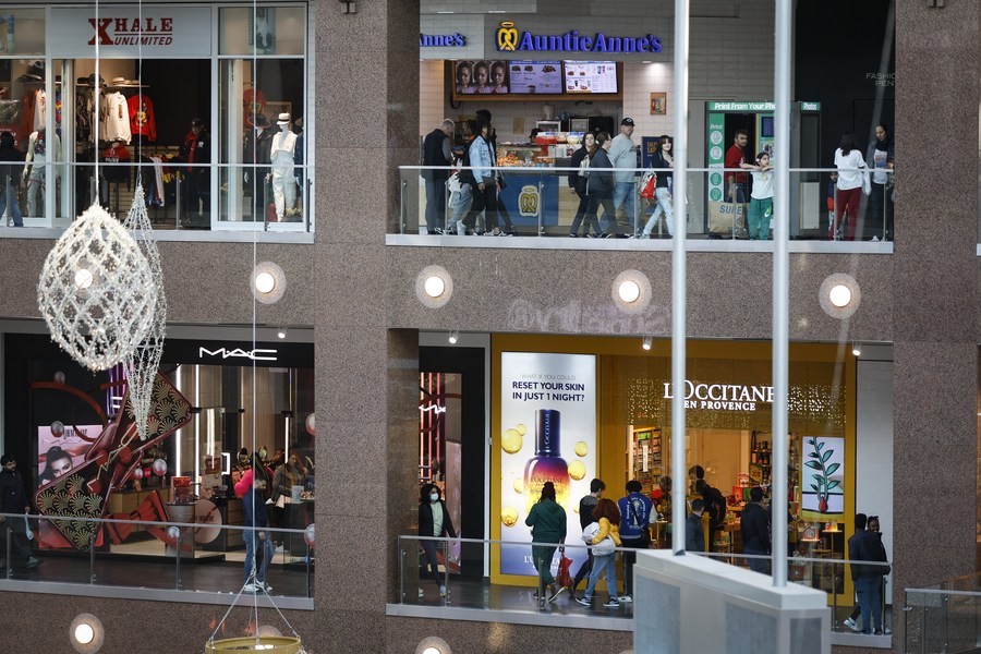 People shop at a shopping mall during Black Friday in Arlington, Virginia, the United States, Nov. 25, 2022. (Photo by Ting Shen/Xinhua)