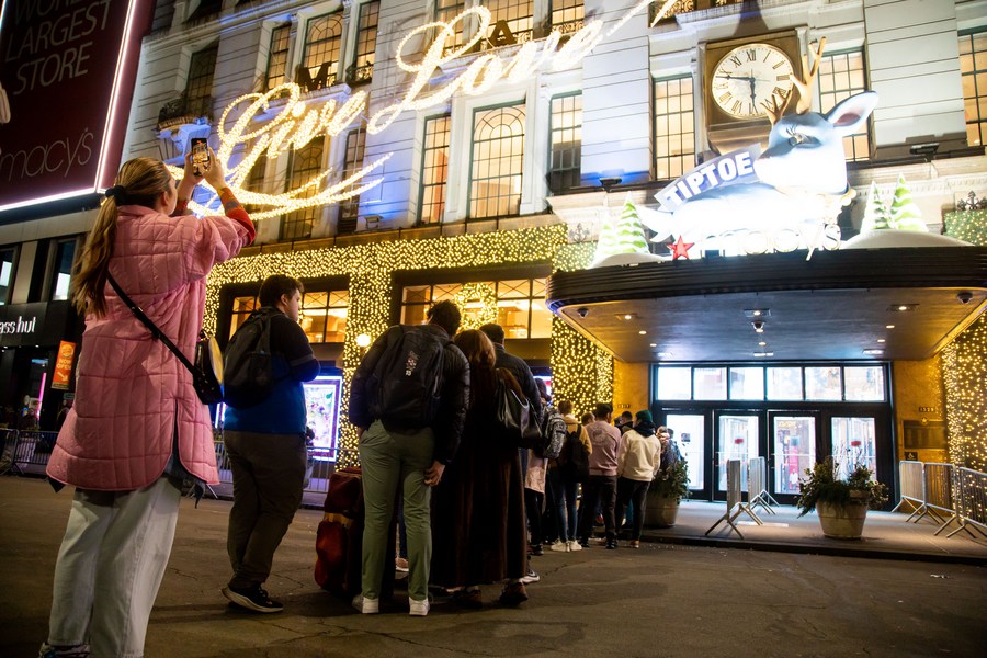 People wait for the opening of a Macy's store during Black Friday in New York, the United States, Nov. 25, 2022. (Photo by Michael Nagle/Xinhua)