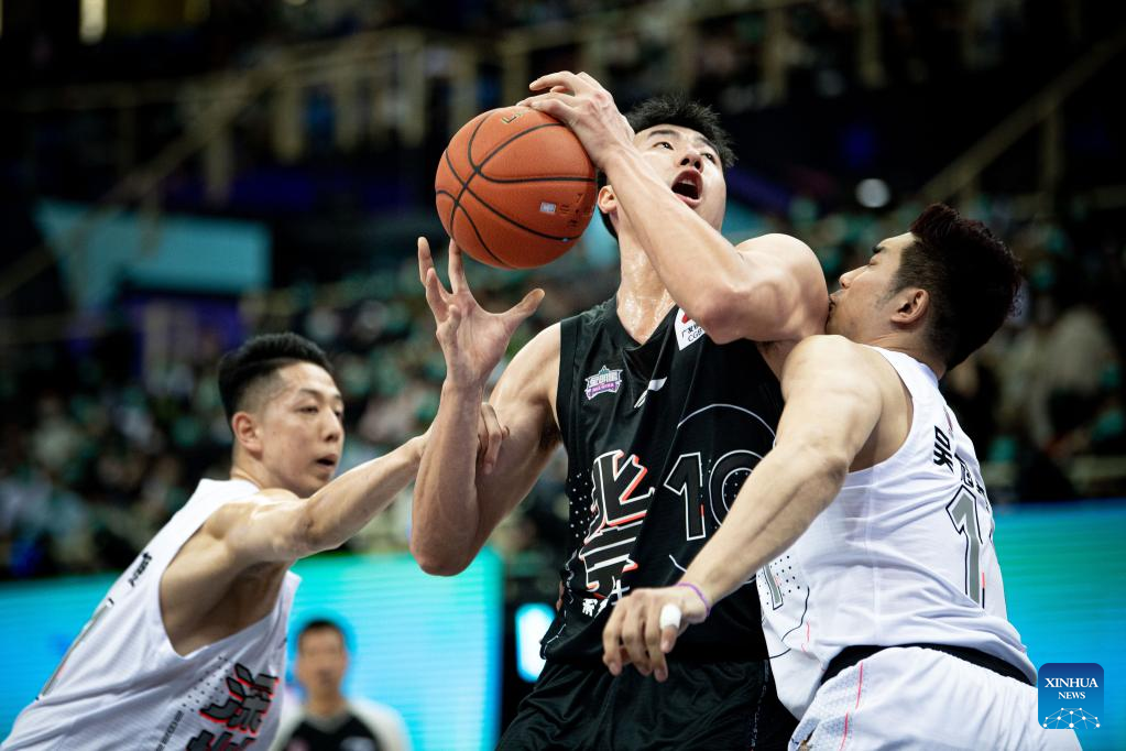 Zou Yuchen (C) of Team North competes during the All-Star Game between Team South and Team North at 2022 CBA All-Star Weekend in Zhuji, east China's Zhejiang Province, Dec. 3, 2022. (Xinhua/Jiang Han)