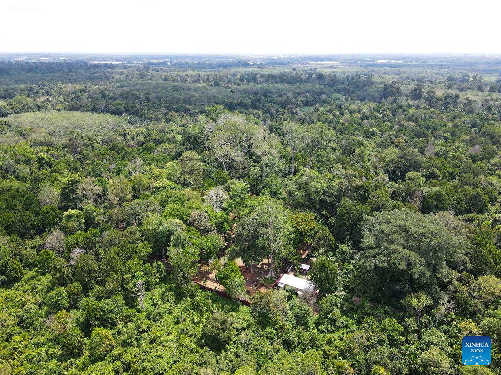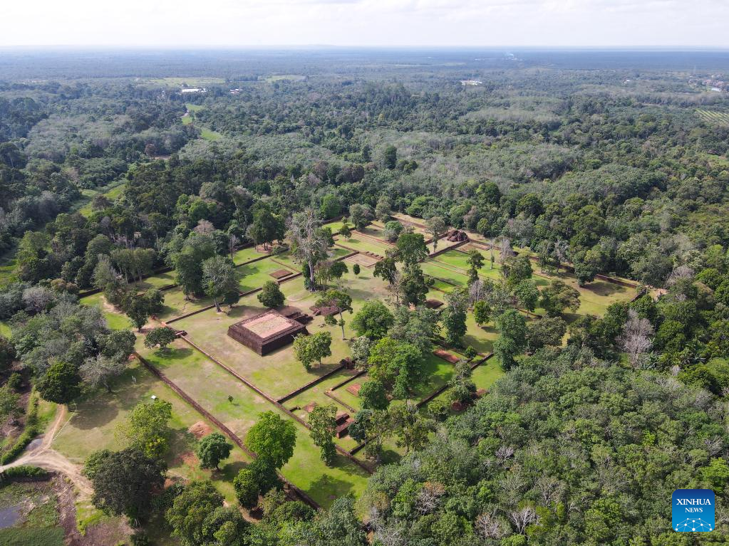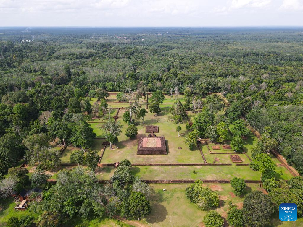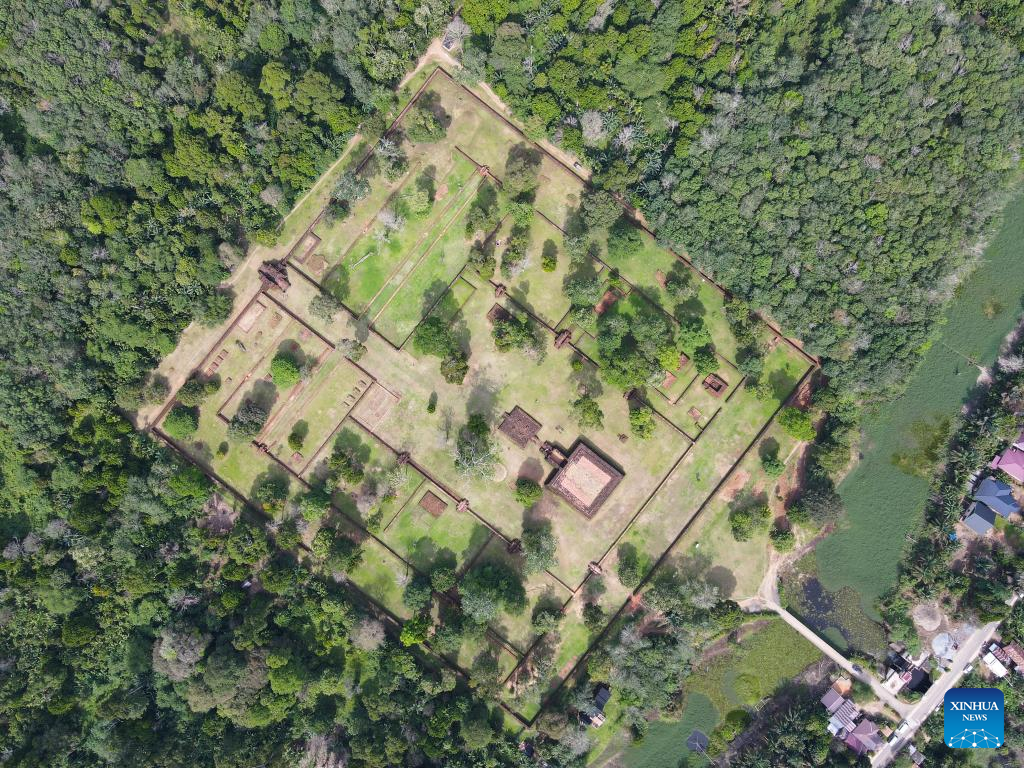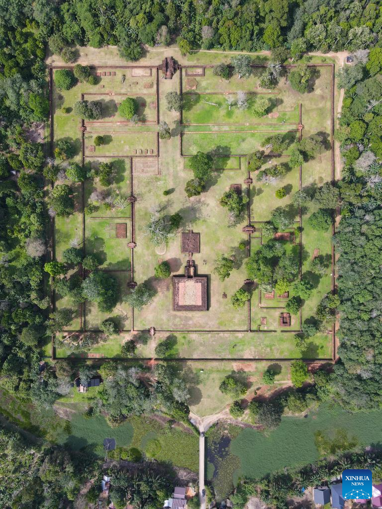 This aerial photo taken on Dec. 1, 2022 shows ruins of Kedaton Temple in Muarajambi Temple Complex in Maro Sebo, Jambi, Indonesia.