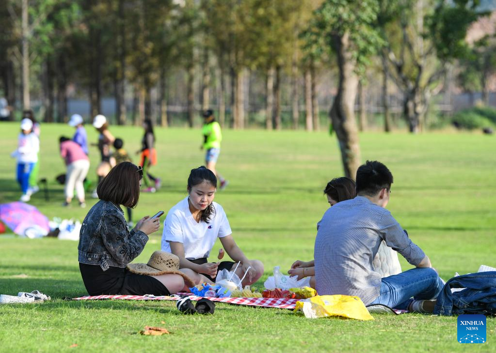 People enjoy their leisure time on Guangyang Isle in southwest China's Chongqing, Nov. 2, 2022.(Xinhua/Wang Quanchao)