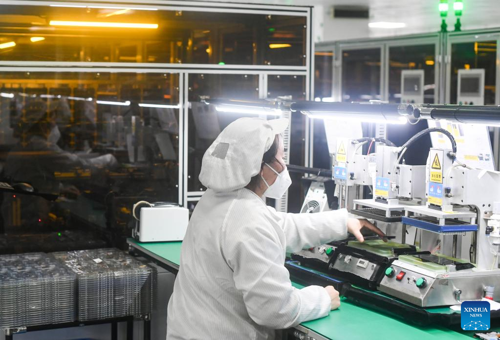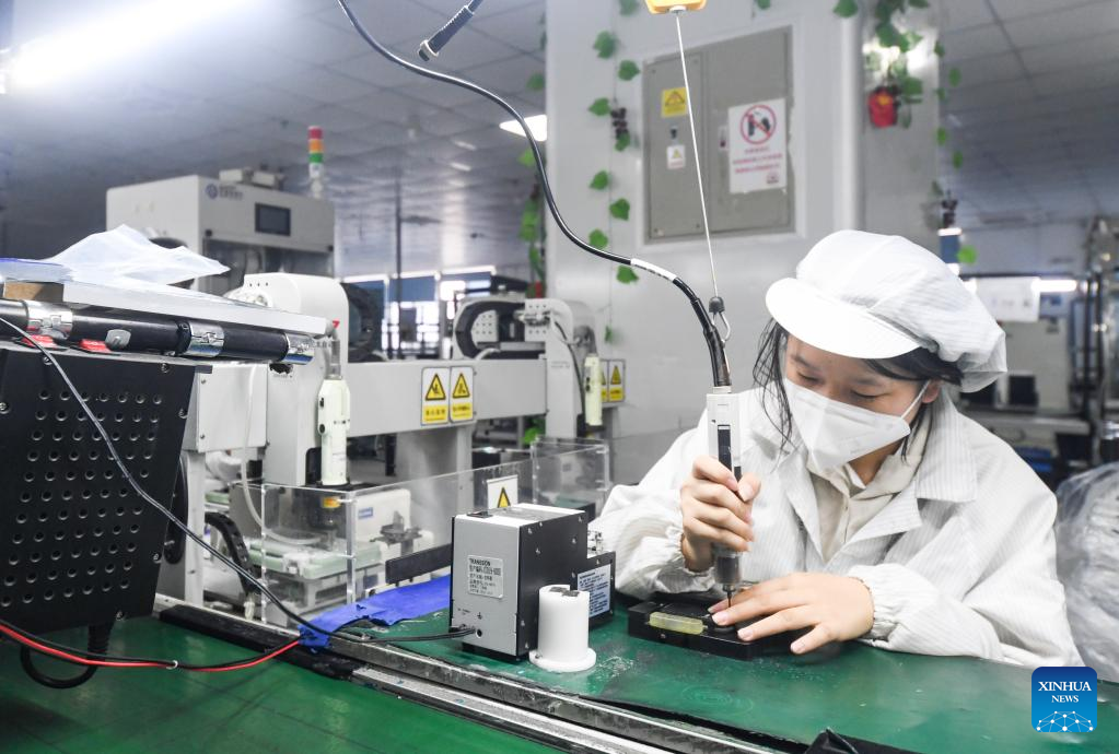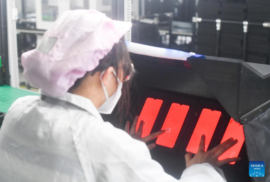 A staff member works at the smartphone production and quality control workshop of Chongqing Transsion Technology Co., Ltd. in Yubei District of southwest China's Chongqing, Dec. 3, 2022. (Xinhua/Wang Quanchao)