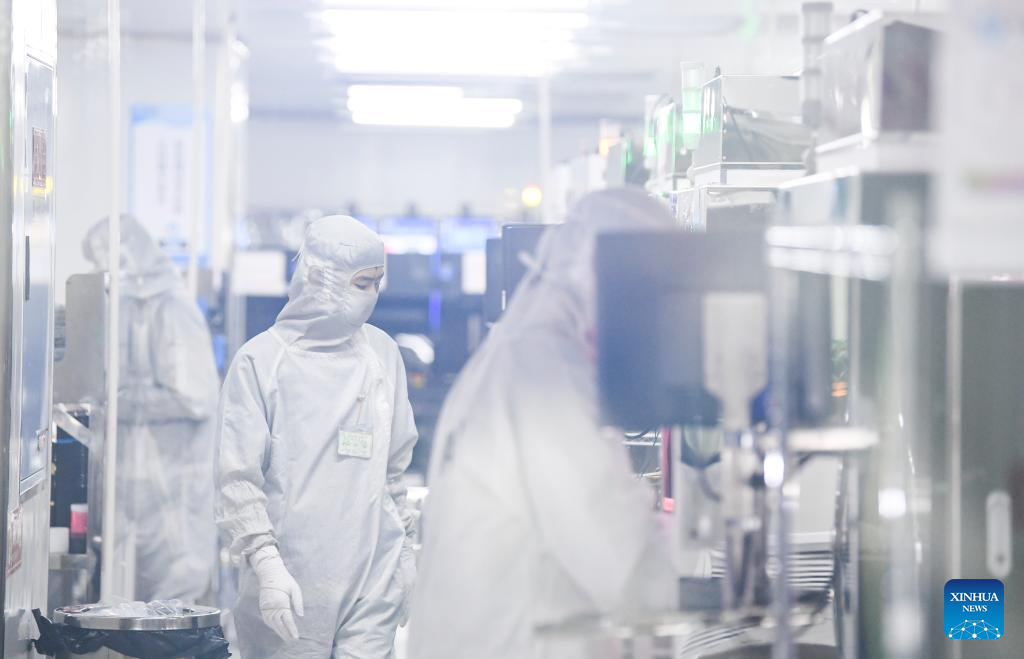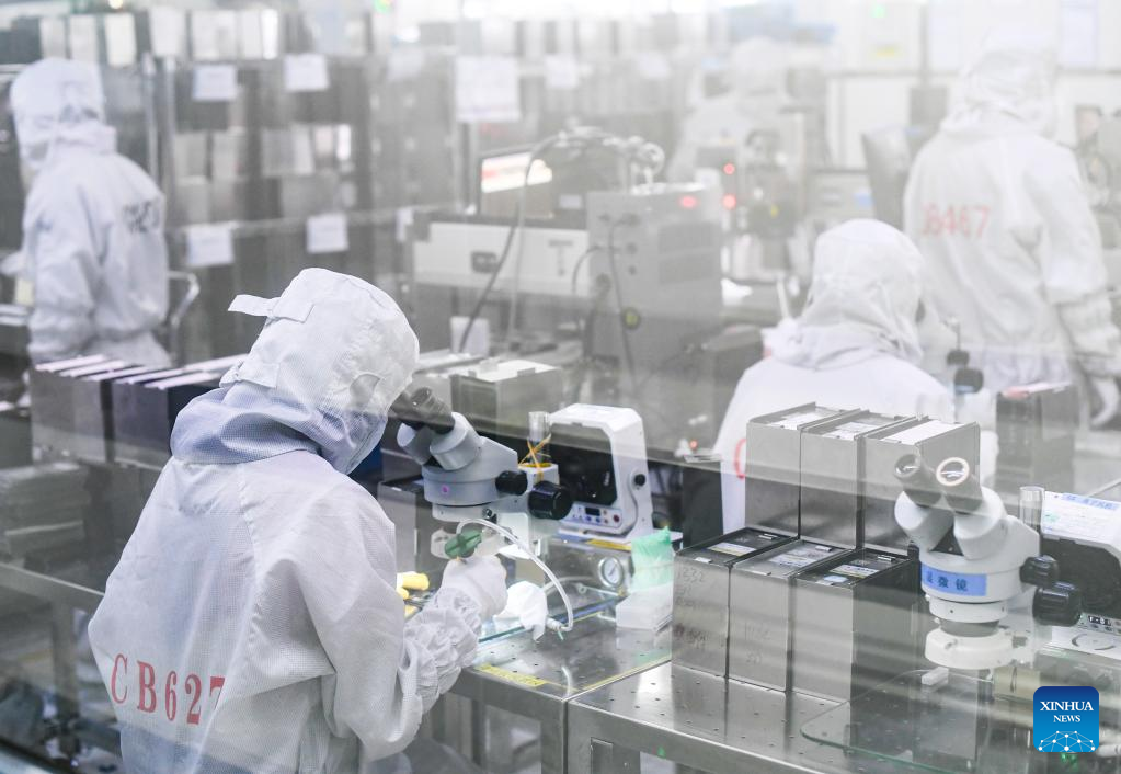 Staff members work at the smartphone production and quality control workshop of Chongqing Transsion Technology Co., Ltd. in Yubei District of southwest China's Chongqing, Dec. 3, 2022. (Xinhua/Wang Quanchao)
