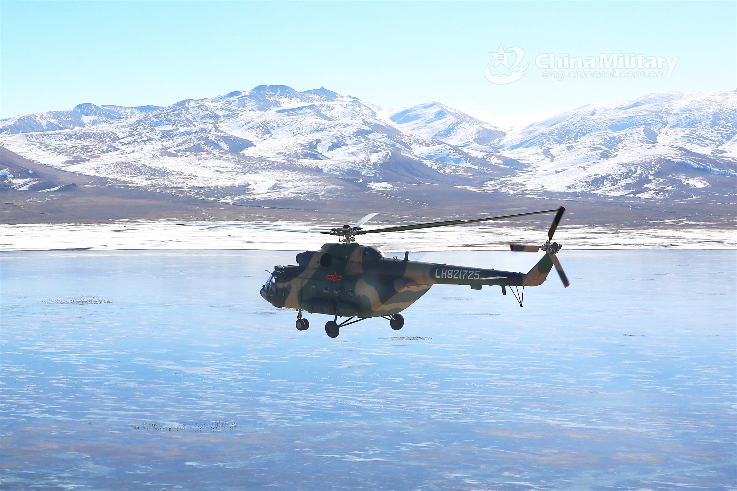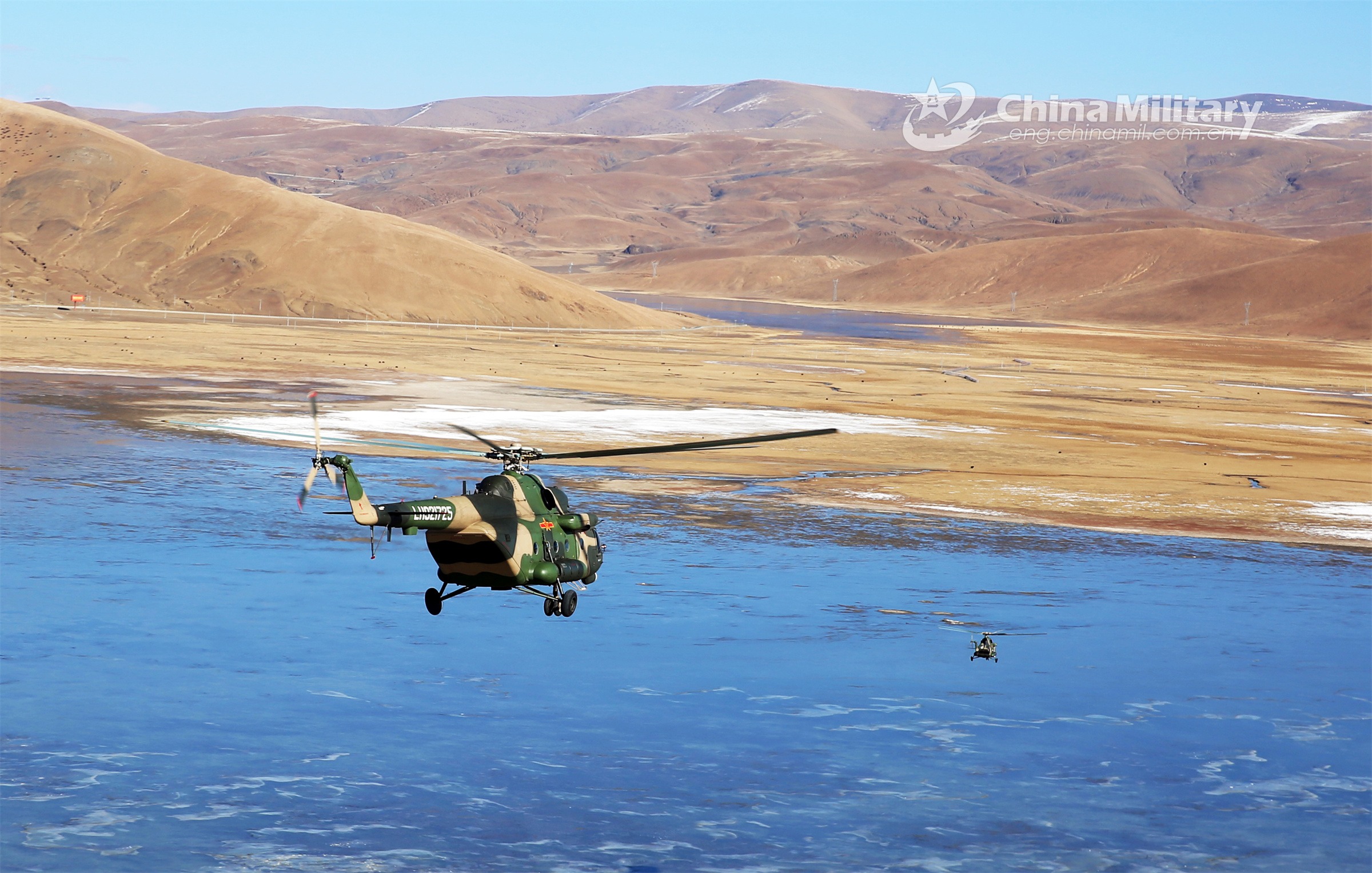 A Mi-171 helicopter attached to a brigade under the PLA Xizang Military Command flies on the plateau during a flight training exercise on November 18, 2022. (eng.chinamil.com.cn/Photo by Hu Qiwu)