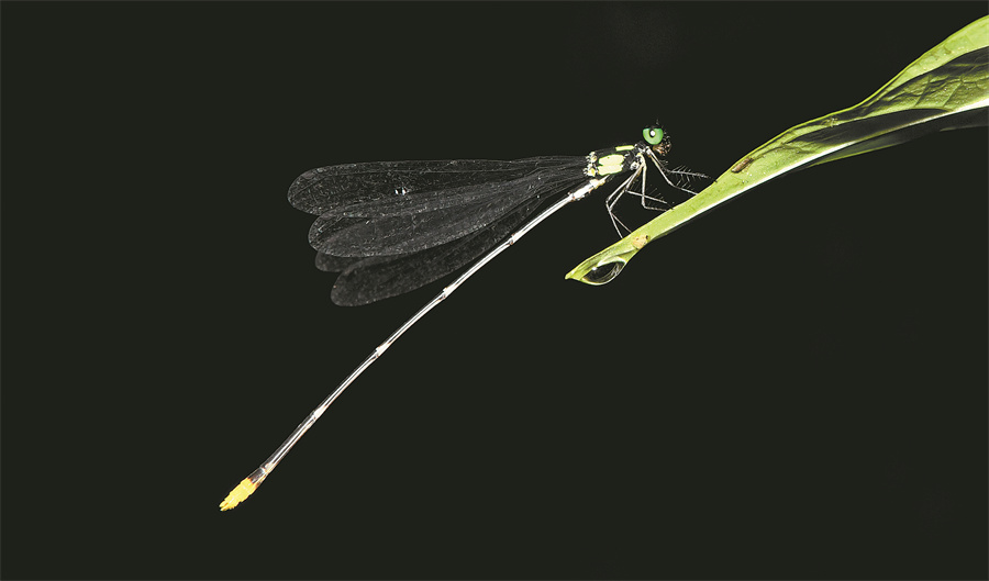 A dragonfly (coeliccia cyanomelas) lands on a leaf in the park. YANG GUANYU/XINHUA