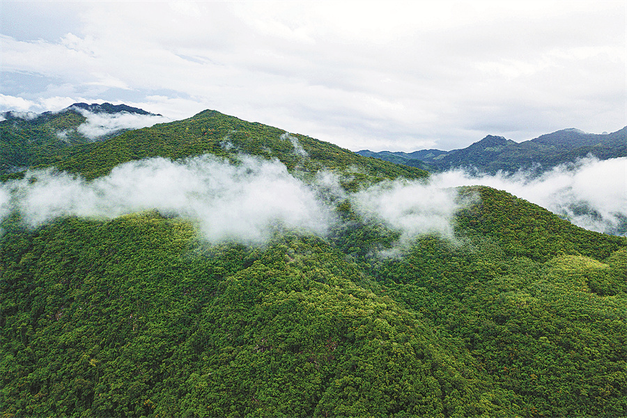 Mist covers the summit area of Yinggeling Mountain in the park's core area. PU XIAOXU/XINHUA