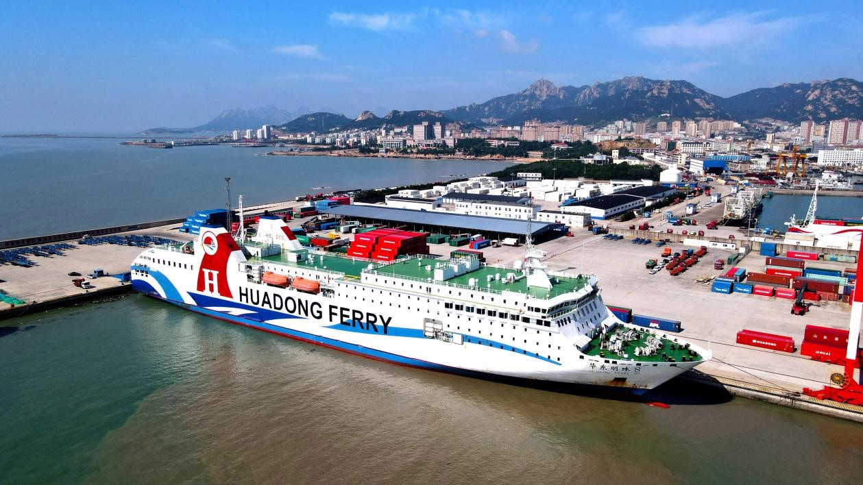 A cargo ship docks at a terminal of the Shidao Port in Rongcheng, east China's Shandong province, Sept. 17, 2022. (People's Daily Online/Yang Zhili)