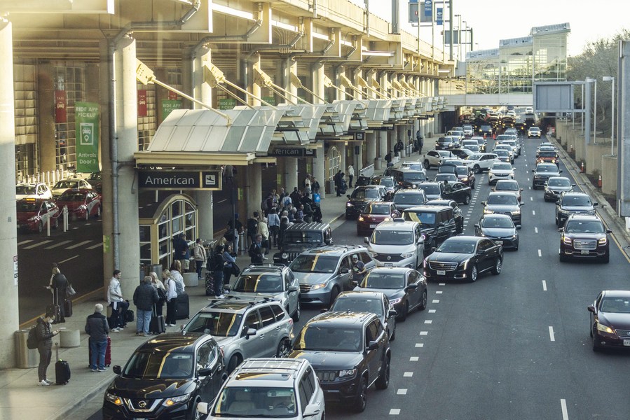 Vehicles are pictured at Ronald Reagan Washington National Airport in Arlington, Virginia, the United States, Nov. 23, 2022. (Photo by Aaron Schwartz/Xinhua)