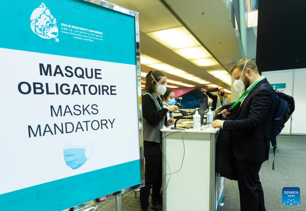 A participant registers for the second part of the 15th meeting of the Conference of the Parties (COP15) to the UN Convention on Biological Diversity (CBD) in Montreal, Canada, on Dec. 6, 2022. (Photo by Zou Zheng/Xinhua)