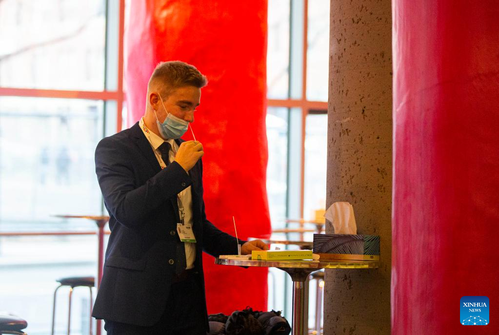 A participant has a COVID-19 test before entering Montreal Convention Center for the second part of the 15th meeting of the Conference of the Parties (COP15) to the UN Convention on Biological Diversity (CBD) in Montreal, Canada, on Dec. 6, 2022. (Photo by Zou Zheng/Xinhua)