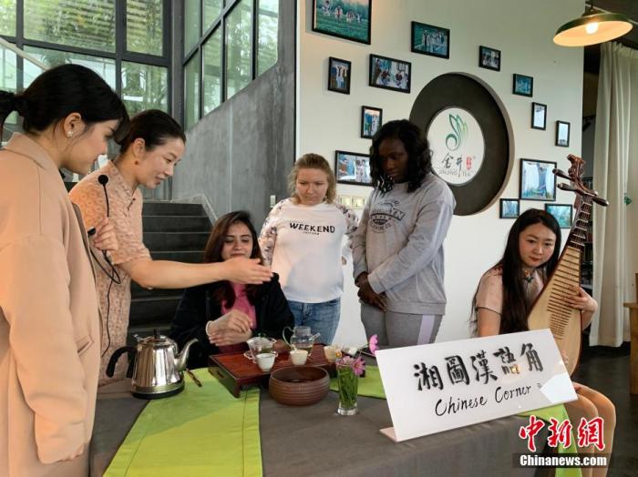 Foreigners experience brewing tea. (Photo/Zhang Xiaoyan)