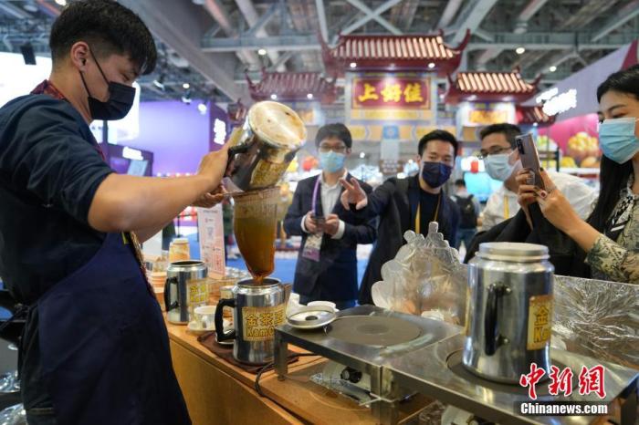 A man makes Hong Kong-style milk tea. (China News Service/Cui Nan)