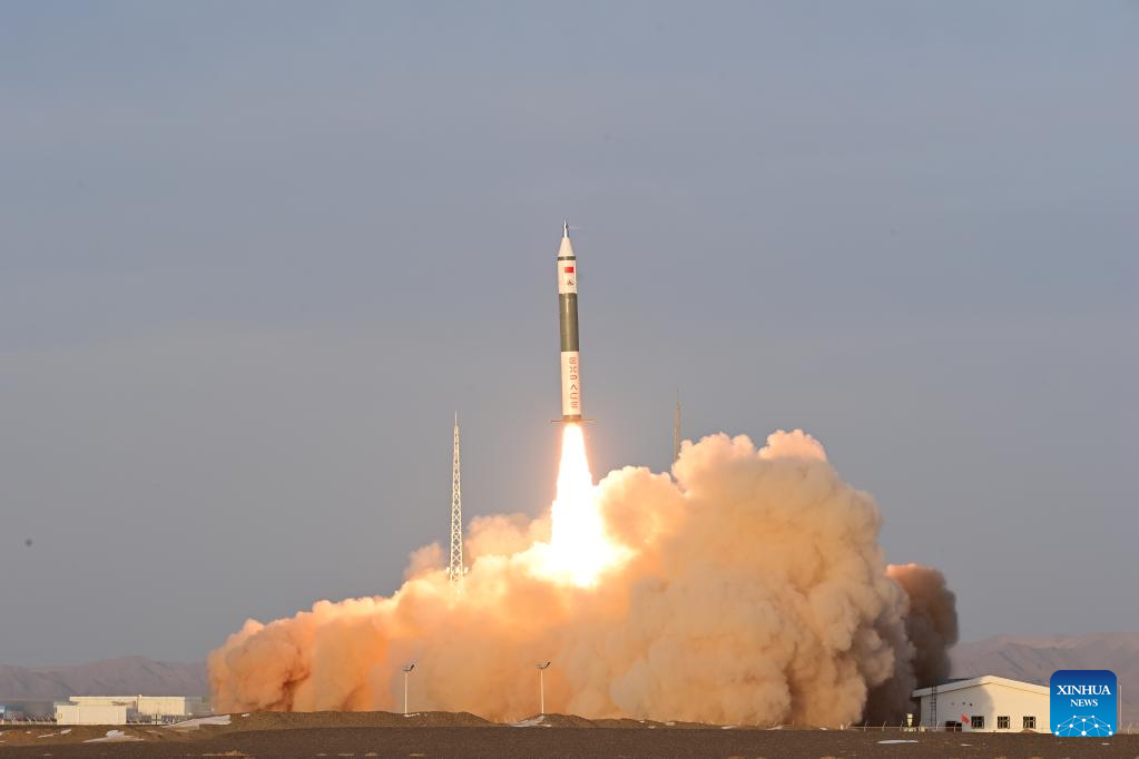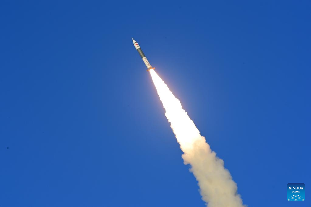 A Kuaizhou-11 Y2 carrier rocket carrying the VHF Data Exchange System (VDES) test satellite blasts off from the Jiuquan Satellite Launch Center in northwest China, Dec. 7, 2022. (Photo by Wang Jiangbo/Xinhua)