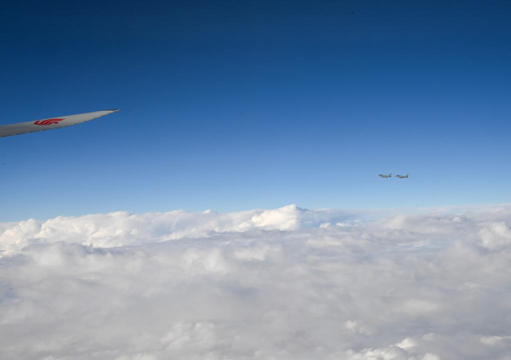 Xi's plane was escorted by four fighter jets from the Royal Saudi Air Force after it entered Saudi Arabia's airspace, and by six Saudi Hawk jets from the royal aerobatic team after it entered Riyadh's airspace.