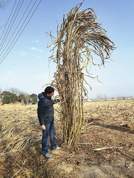 A Juncao test field in Caomiao township, Dafeng district, Yancheng, has planted 10 hectares of Giant Juncao grass, a Juncao grass variety that can grow about five to six meters tall.