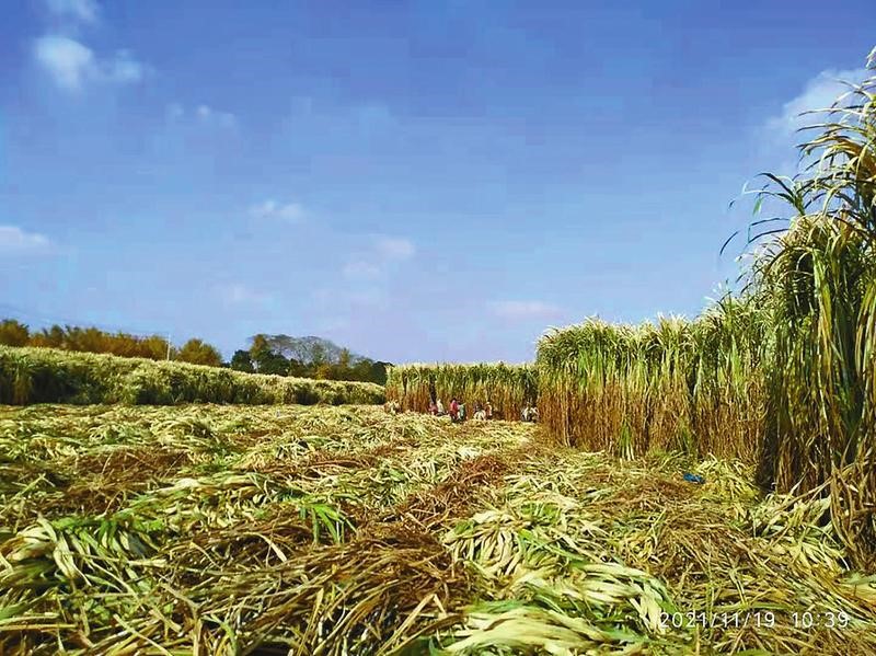 Giant Juncao grass is reaped in Caomiao township, Dafeng district, Yancheng, east China's Jiangsu province. (Photo from Yanfu People's Daily)