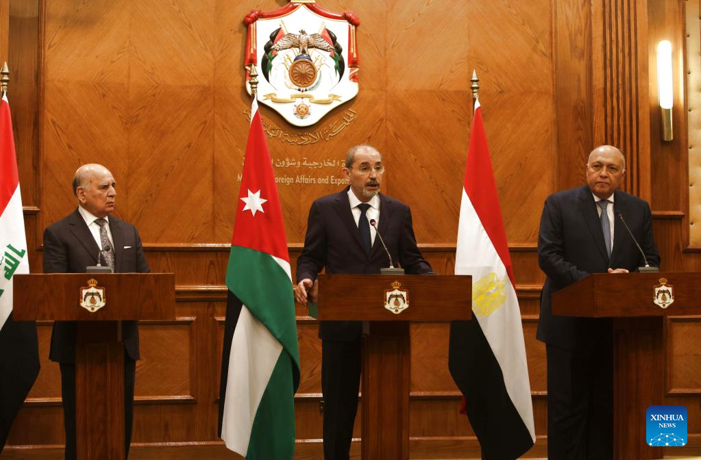 AMMAN, Dec. 7 (Xinhua) -- The foreign ministers of Jordan, Egypt and Iraq held a meeting Wednesday in the Jordanian capital to discuss ways to boost the trilateral cooperation.