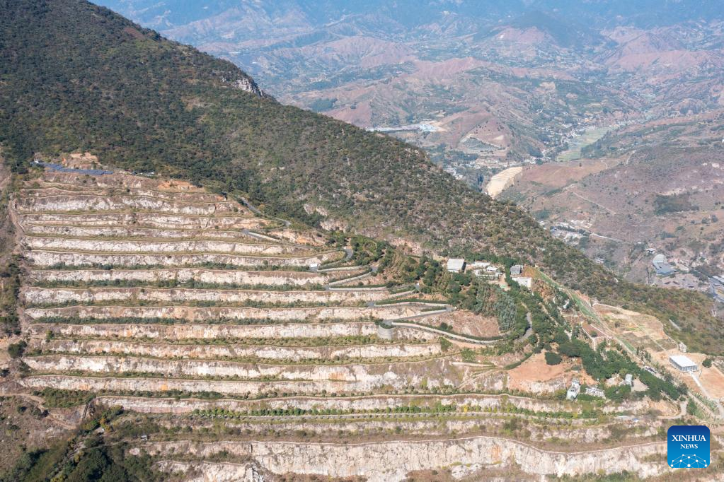 This aerial photo shows a mining site after ecological restoration in a cycad national nature reserve in Panzhihua, southwest China's Sichuan Province, Nov. 28, 2022. (Xinhua/Xu Bingjie)