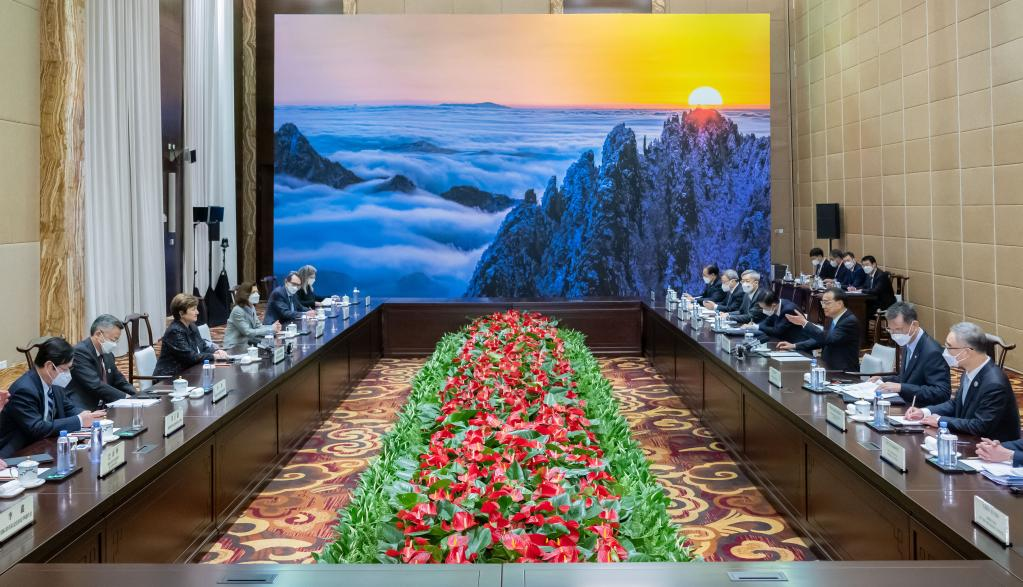Chinese Premier Li Keqiang meets with International Monetary Fund (IMF) Managing Director Kristalina Georgieva, who is in China for the seventh "1+6" Roundtable in Huangshan, east China's Anhui Province, Dec. 8, 2022. (Xinhua/Zhai Jianlan)