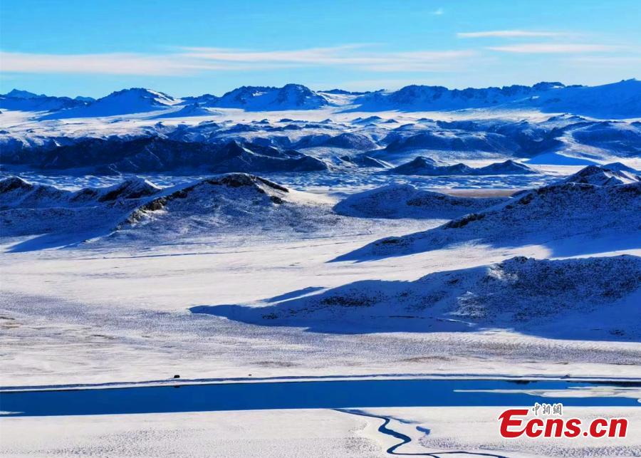 Snow-covered mountains embrace the bright, blue sky above the Bayanbulak grassland, Hejing County, northwest China's Xinjiang Uygur Autonomous Region. (Photo: China News Service/Wang Fusheng)