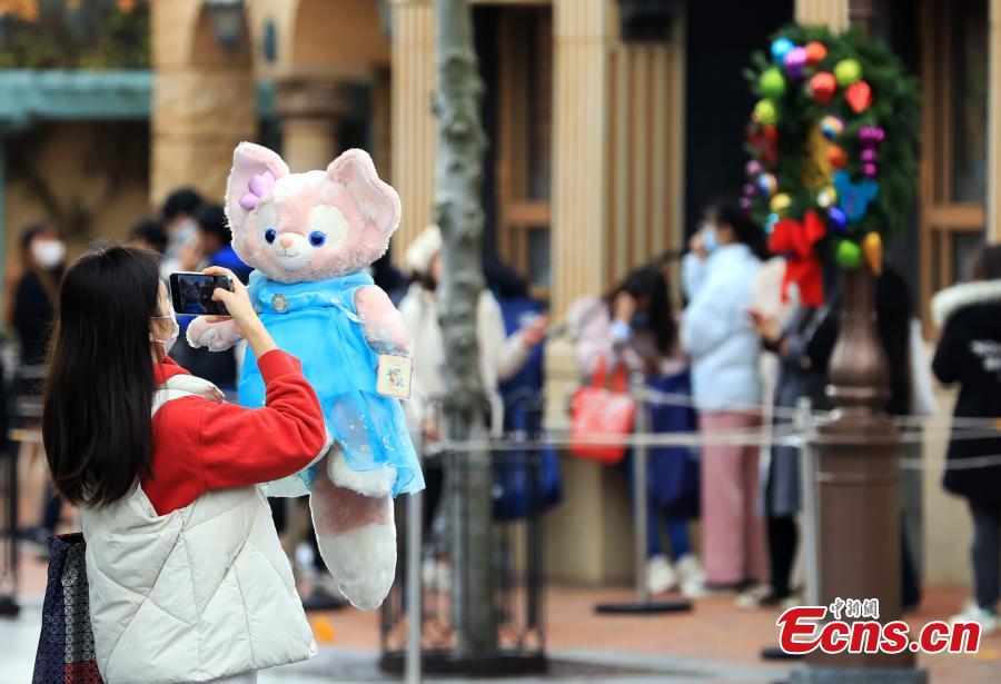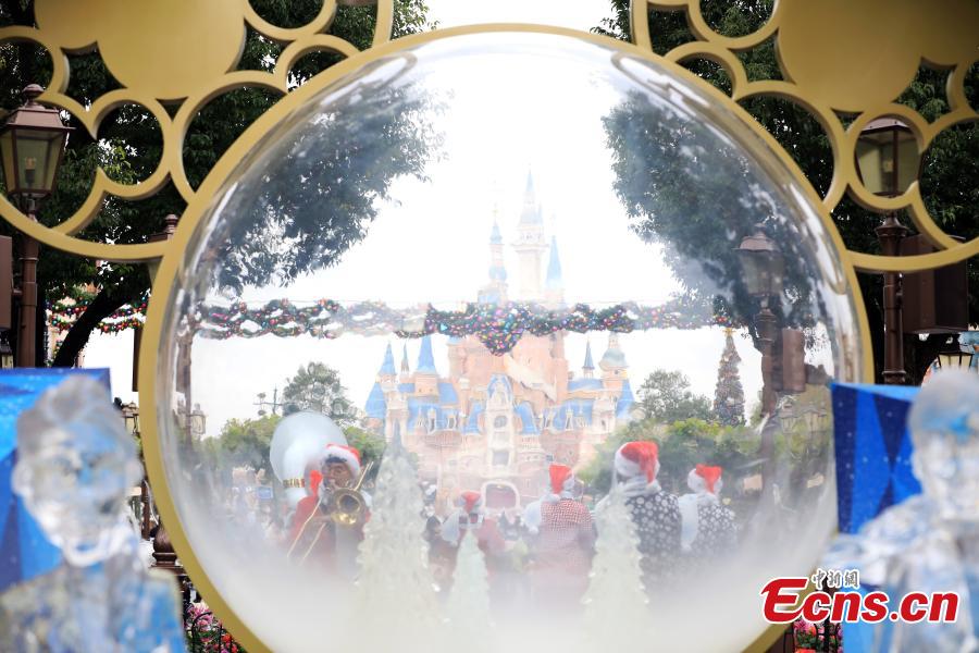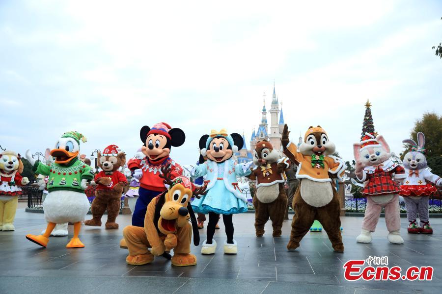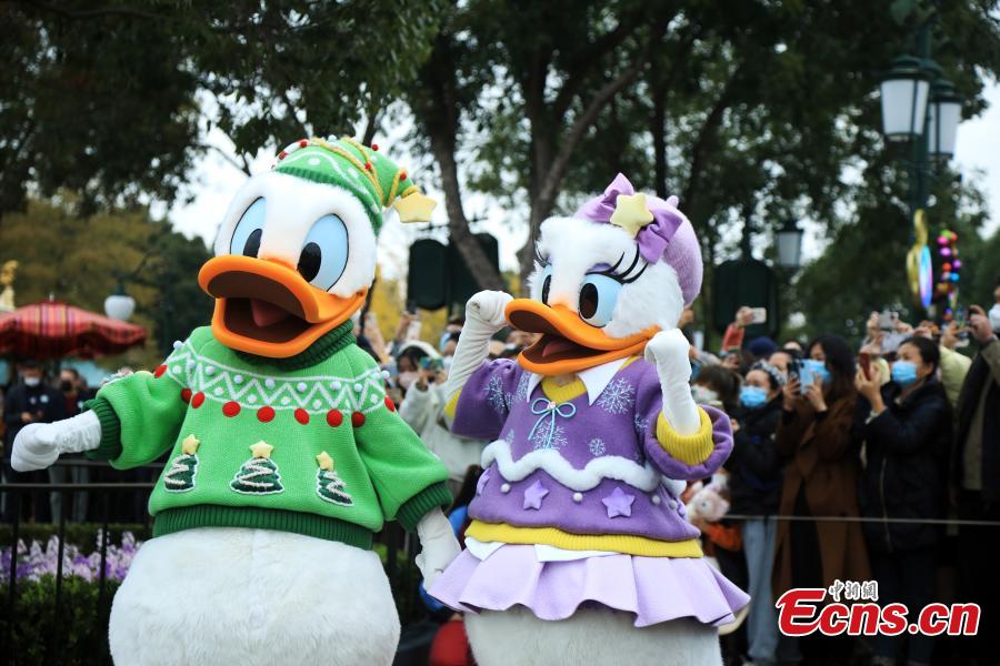 Staff members perform to welcome visitors in the Shanghai Disneyland, Dec. 8, 2022. (Photo: China News Service/Tang Yanjun)