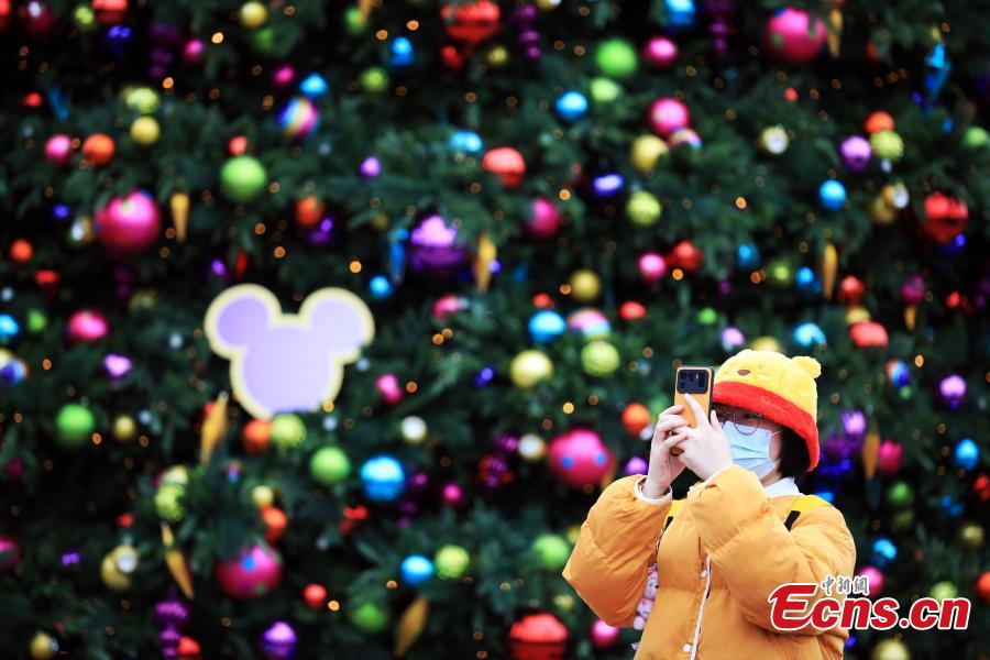 A tourist takes photos in the Shanghai Disneyland, Dec. 8, 2022. (Photo: China News Service/Tang Yanjun)