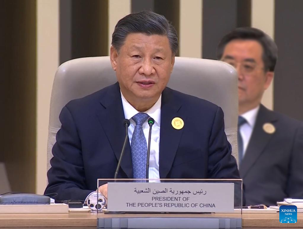 RIYADH, Dec. 9 (Xinhua) -- Chinese President Xi Jinping called on China and Arab states to carry forward the spirit of China-Arab friendship, and foster a closer China-Arab community with a shared future, while addressing the first China-Arab States Summit held here Friday.